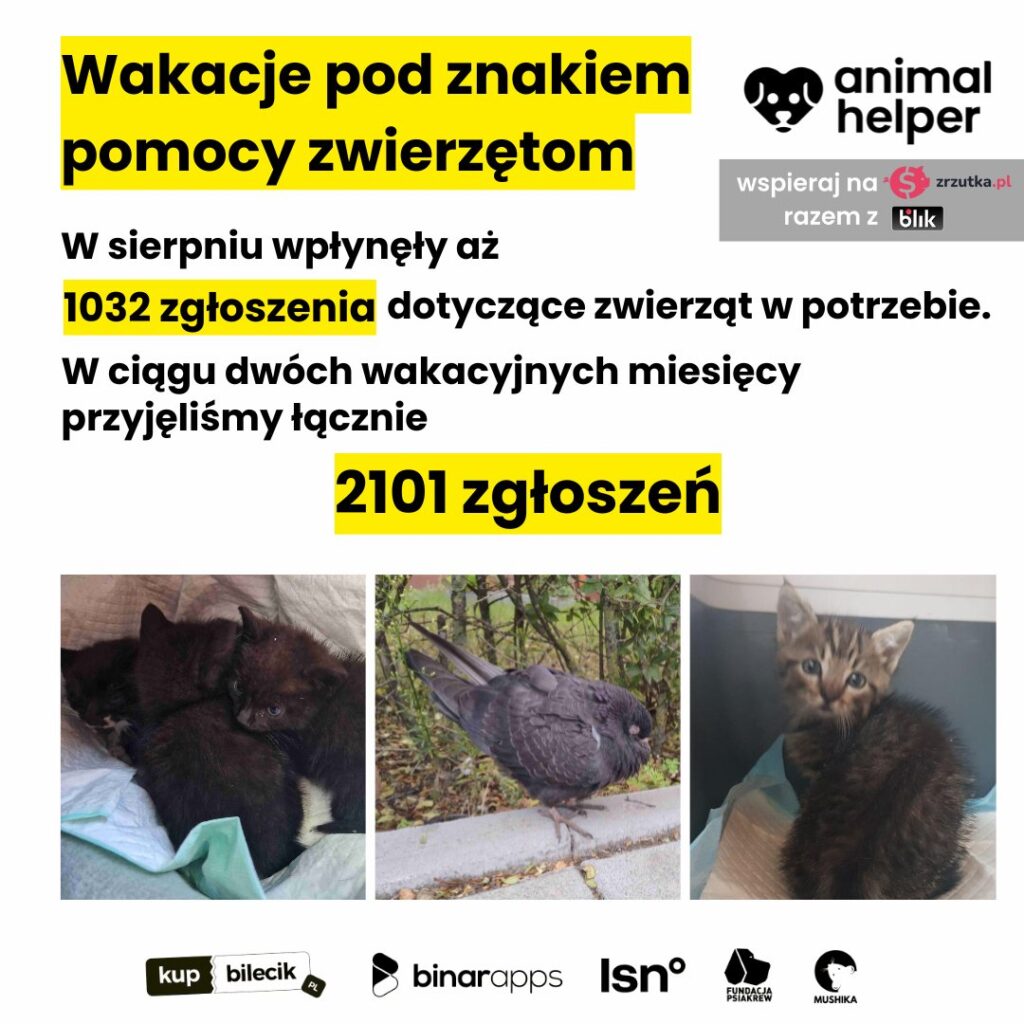 Ranny trzmielojad to tylko jedno ze zgłoszeń, które wpłynęło do Animal Helper w minione wakacje. – Lipiec i sierpień były bardzo intensywne, łącznie otrzymaliśmy 2101 zgłoszeń i wykonaliśmy blisko 9 000 połączeń telefonicznych. To ogromne wyzwanie, ale też powód do radości, bo pokazuje, że nasze społeczeństwo nie przechodzi obojętnie obok zwierząt w potrzebie – mówi Magdalena Matelska z Fundacji Psia Krew, odpowiedzialnej za projekt Animal Helper.