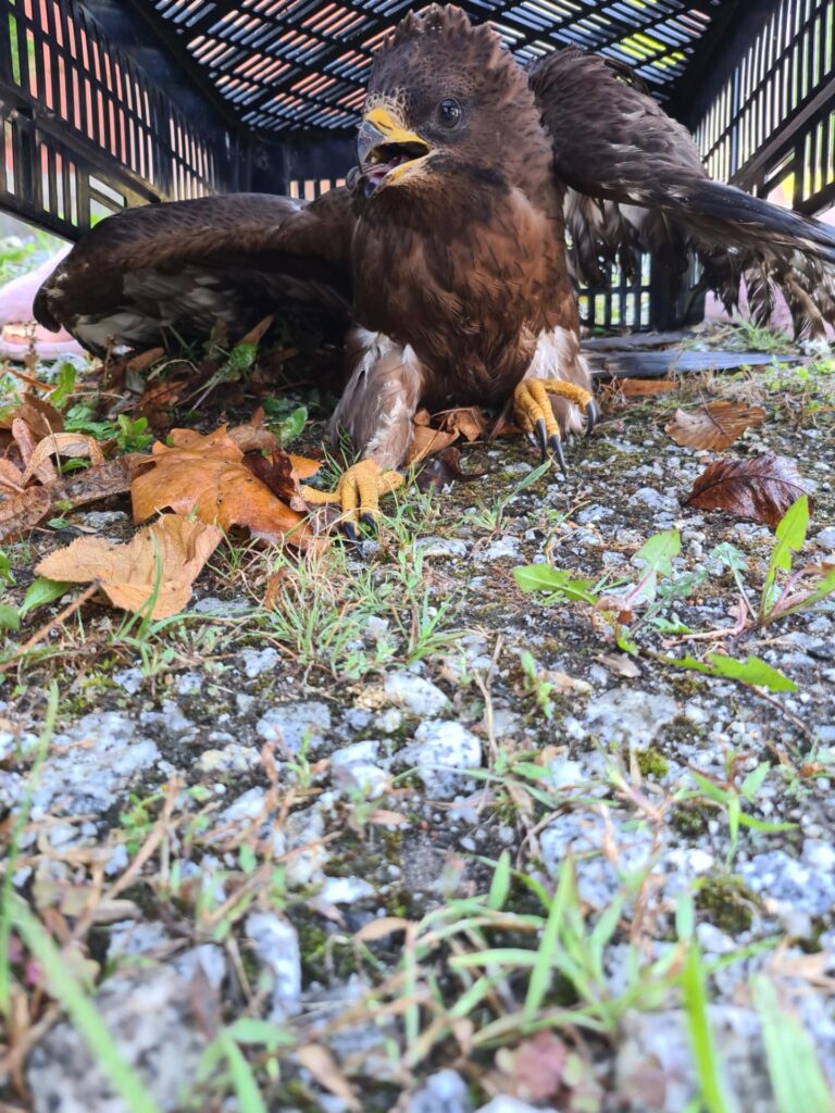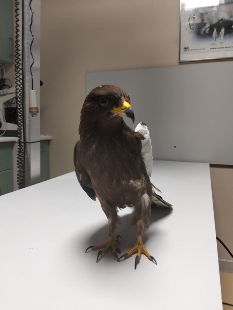 Trzmielojady to drapieżne ptaki wędrowne, które żywią się głównie owadami. To właśnie dlatego na przełomie sierpnia i września, gdy w Polsce jest już coraz trudniej o pożywienie, odlatują do „ciepłych krajów”. Ten ze zgłoszenia, które wpłynęło za pomocą aplikacji Animal Helper, nie odleciał. Z uszkodzonym skrzydłem czekał na ratunek człowieka.